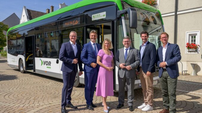 Silvia Kaupa-Götzl sagte. „Das ist ein Vorzeigeprojekt für ganz Österreich und ein Meilenstein für die Weiterentwicklung regionaler Busnetze“. Postbus habe seit 2015 in neun Pilotprojekten in ganz Österreich E-Busse getestet und bereits vier Stück in Wolfurt und je eines in Judenburg und Wolfsburg im Einsatz. Die letzten eineinhalb Jahre der Vorbereitungszeit habe man für die Schulung der Mitarbeiter, die Umrüstung der Werkstätten, neue Energiezuleitungen und einen Test der Busse in der realen Umgebung verwendet.
