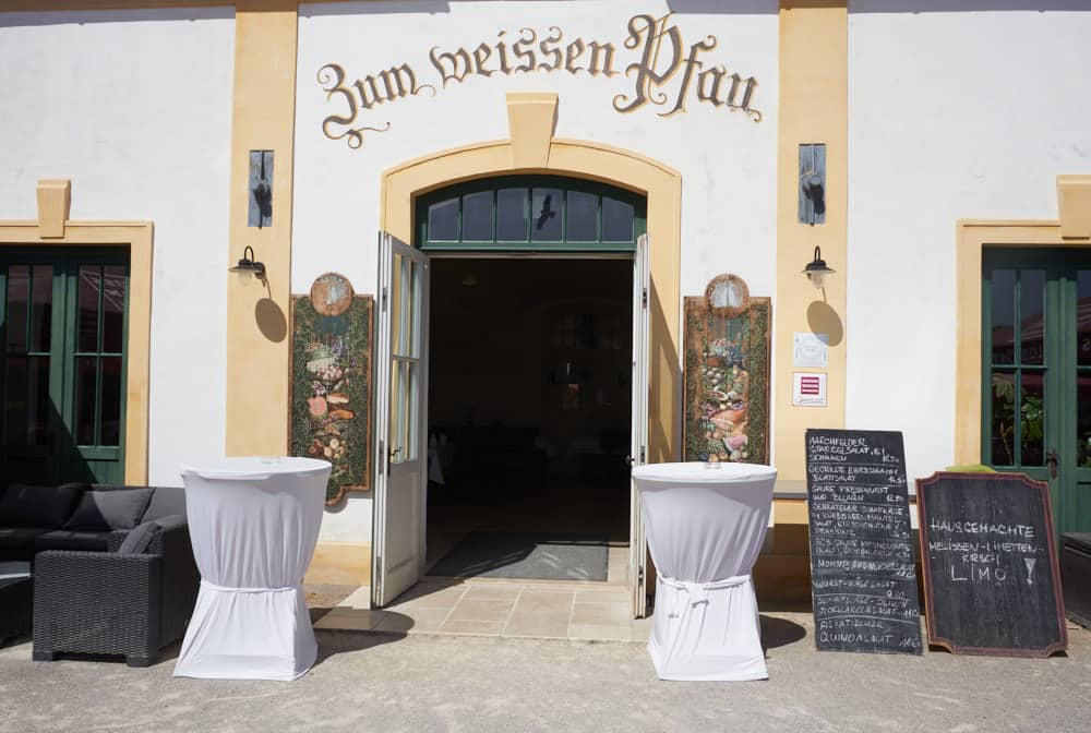 Mitten im idyllischen Meierhof, mit Blick über den Streicheltiergarten, liegt das Restaurant „Zum weißen Pfau“.