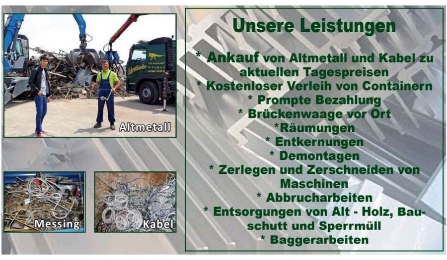 Abfallentsorgung / Müllabfuhr - Großhandel mit Altmaterialien und Reststoffen - Recycling von Eisen und Metallen - Abbrucharbeiten.