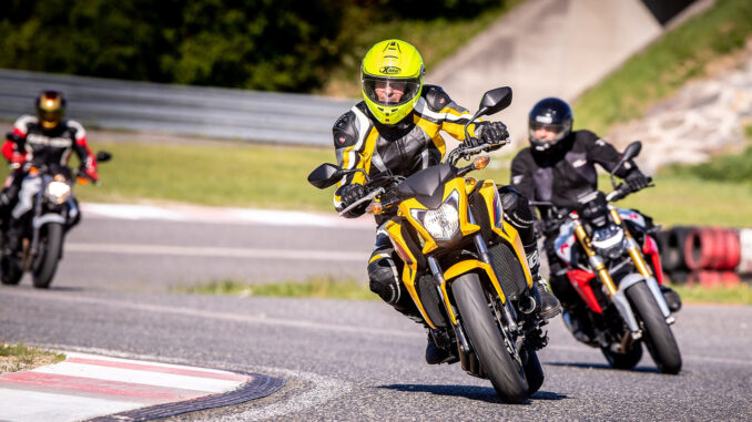Auch den Kopfschutz sollte man gut wählen. Ein Integral- oder Vollvisierhelm mit fester Kinnpartie bietet optimalen Schutz. Aber auch Modulhelme mit abnehmbarem Kinnteil sind aufgrund ihrer großen Wandlungsfähigkeit eine Alternative. „Der Helm sollte jedenfalls über ein kratzfestes Visier und ein gutes Belüftungssystem verfügen und der EC-Norm 22 entsprechen. Außerdem sollte er sich perfekt an die Kopfform anpassen und darf weder zu groß noch zu klein sein. Der Kinnriemen muss immer geschlossen sein und darf nicht zu locker sitzen“, erklärt der Motorrad-Profi. Das Fahren mit offenem Helmvisier kann ebenfalls gefährlich werden und sogar zum Erblinden führen.