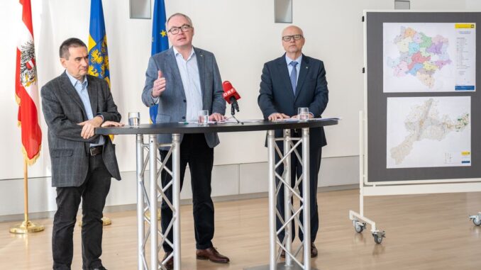 Gleichzeitig wolle man verbrauchte Fläche entsiegeln, deshalb habe das Land vor einem Monat den blau-gelben Bodenbonus vorgestellt. Mittlerweile hätten sich bereits 20 Gemeinden mit Entsiegelungs-Projekten gemeldet. „Heute darf ich zwei konkrete Maßnahmen von sehr umfassenden Raum- und Regionalplanungsprojekten vorstellen“, so Pernkopf, der die „Regionalen Leitplanungen“ und die Energieraumplanung präsentierte.
