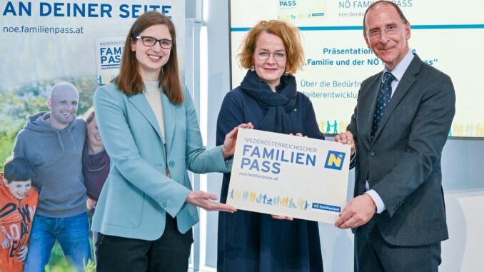 Im nächsten Jahr feiert der NÖ Familienpass sein 40-jähriges Bestehen und ist mittlerweile ein Erfolgsmodell, bestätigt nun auch eine aktuelle Studie des Instituts für Strategieanalysen, die unter dem Titel „Familie und der NÖ Familienpass“ die Bedürfnisse niederösterreichischer Familien wie auch die Weiterentwicklung des Familienpasses erhoben hat. Am heutigen Mittwochvormittag stellten Landesrätin Christiane Teschl-Hofmeister, Peter Filzmaier und Katrin Praprotnik die kürzlich erhobene Studie vor.