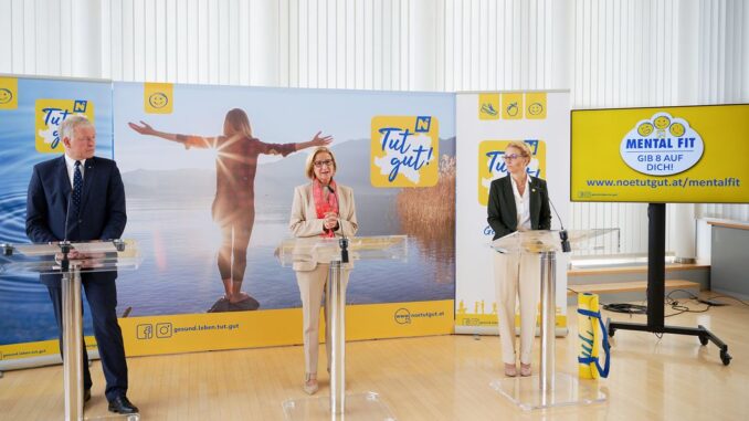 „Tut gut!“, die Gesundheitsvorsorge-Initiative des Landes Niederösterreich setzt bis Ende des Jahres 2022 drei Kampagnen-Schwerpunkte. Den Anfang macht „mentale Gesundheit“, danach folgen Ernährungs- und Bewegungsoffensiven. Landeshauptfrau Johanna Mikl-Leitner, Landesrat Martin Eichtinger und „Tut gut!“-Geschäftsführerin Alexandra Pernsteiner-Kappl präsentierten heute bei einer Pressekonferenz im Landhaus die Kampagne „Mental fit und widerstandsfähig in den Herbst starten“.
