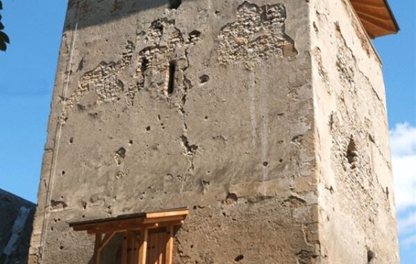 Im Liechtensteiner Urbar von 1414 wurde der Turm erstmals urkundlich erwähnt („… so ist daselb ein hof, do der turm inlegt…“) und gehörte damals den Liechtensteinern. Er war Teil einer ehemals offenbar befestigten Hofanlage.